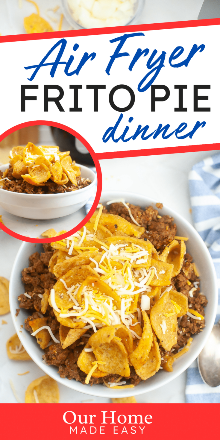 Make this easy Air Fryer Frito Pie with leftover or store-bought chili for a quick weeknight dinner! Topped with melted cheese and crunchy Fritos, it’s a comfort food classic.