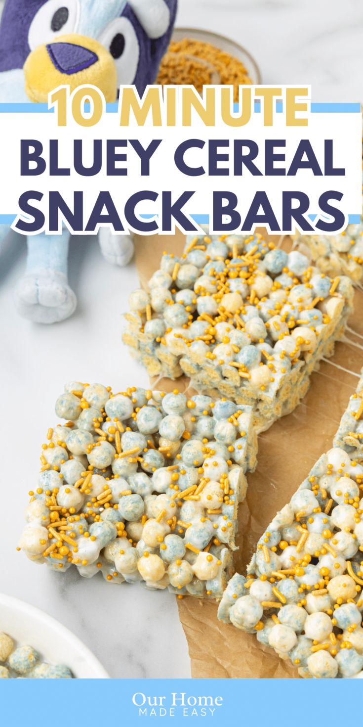 If your little ones are obsessed with Bluey, you will love this fun and easy Bluey recipe! These homemade Bluey cereal bars are the perfect mix of crispy, chewy, and sweet, made with the new Bluey brand cereal for a playful twist on classic Rice Krispie treats.