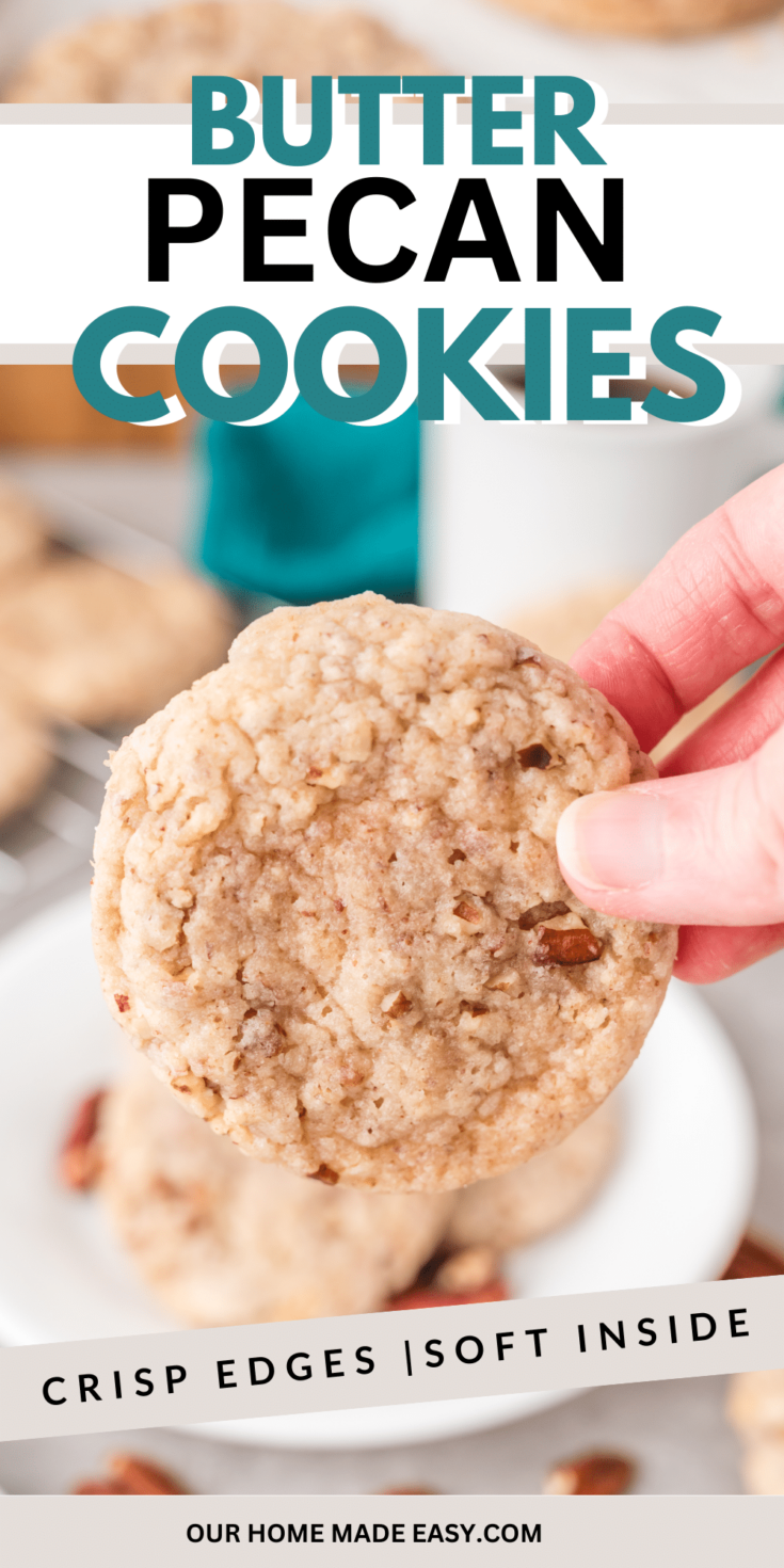 Make these butter pecan cookies with crispy edges and a soft inside. A rich, nutty flavor and buttery taste make them the perfect sweet treat.