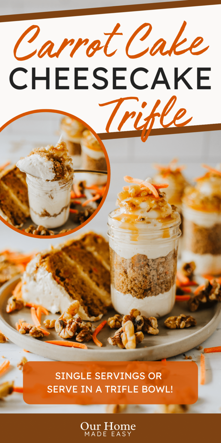 Enjoy this easy carrot cake cheesecake trifle, a delightful combination of classic flavors. Perfect for fall potlucks and holiday parties!