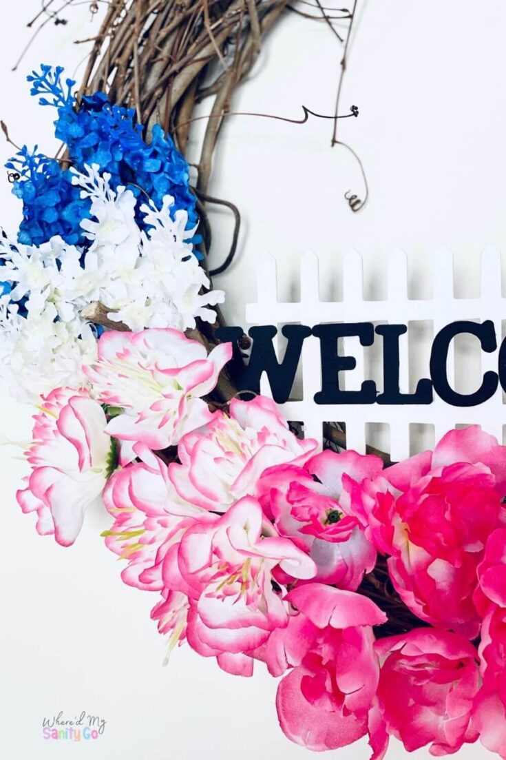 Full of color, this easy welcome wreath is fun to make and will be a bright and colorful addition to the door.