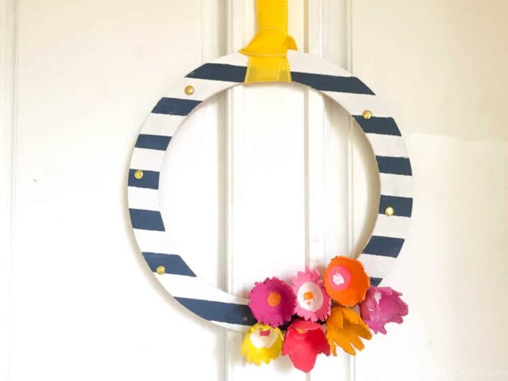 The flowers on this wreath are made from egg cartons so that you can recycle those instead of throwing them away.