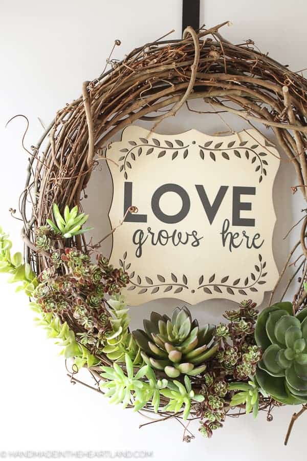 Another easy and quick wreath that you can put together, this succulent spring wreath will be a beautiful addition to the door.