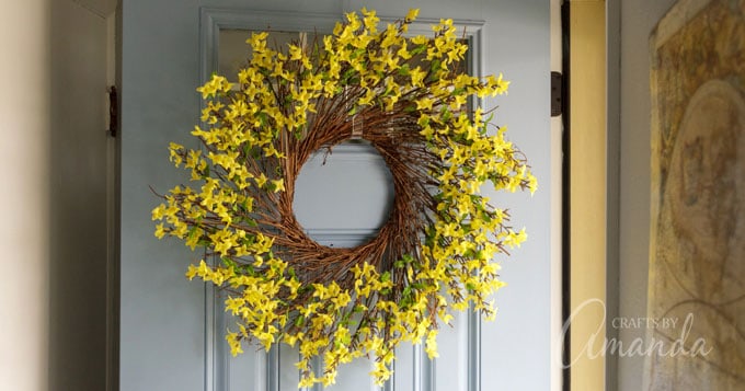 This forsythia wreath is an easy spring wreath that will be a great addition to any front door.