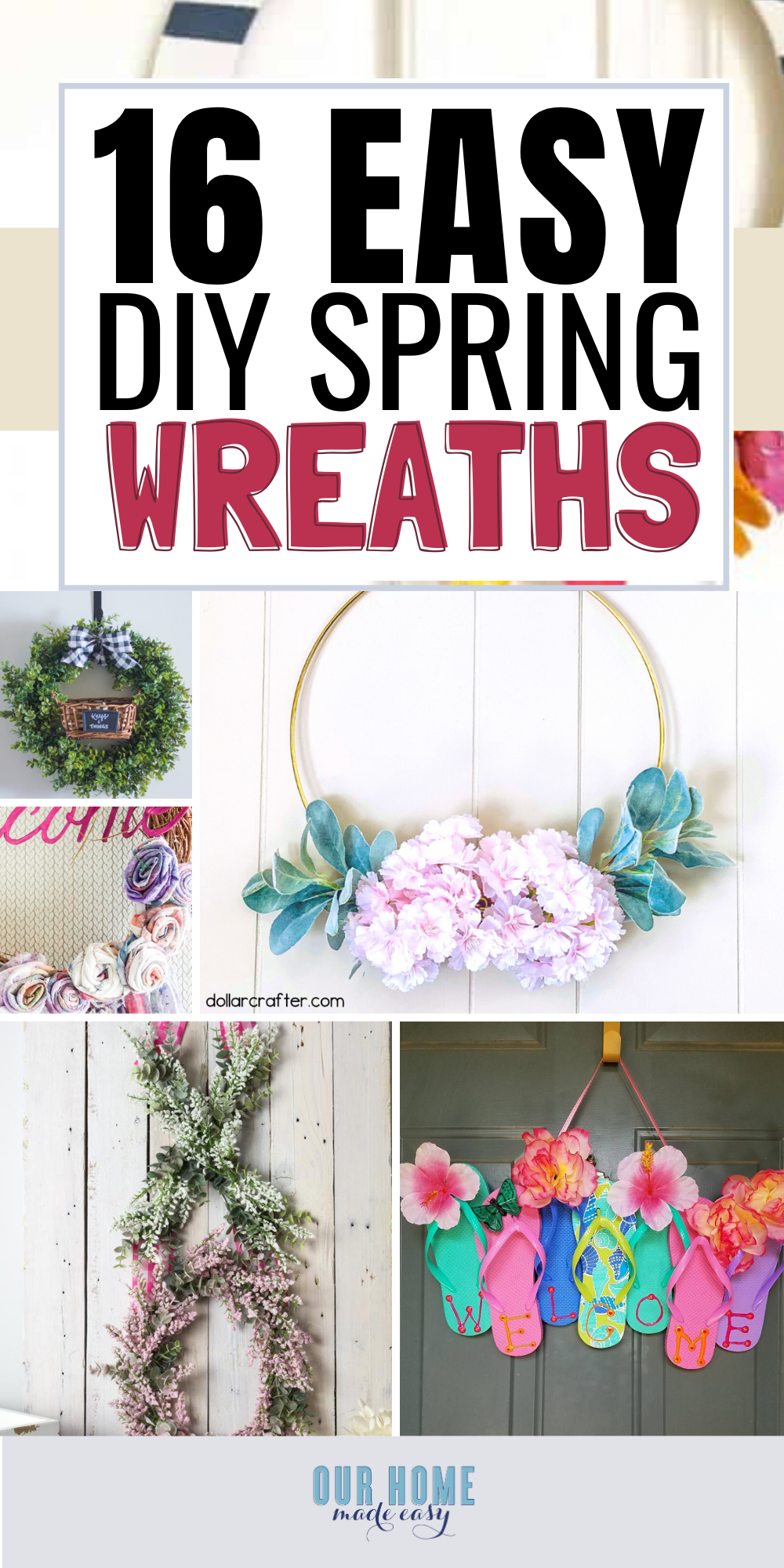These DIY spring wreaths are easy to make. They only take a few supplies, most of which you can find at your local Dollar Store, making them an affordable way to bring some spring into your home.