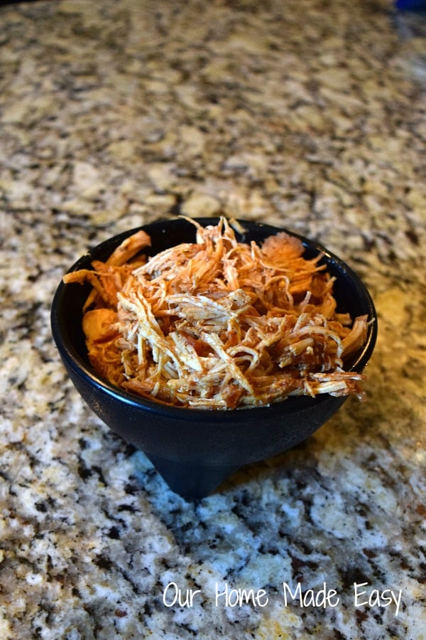 - Shred chicken with forks before serving.