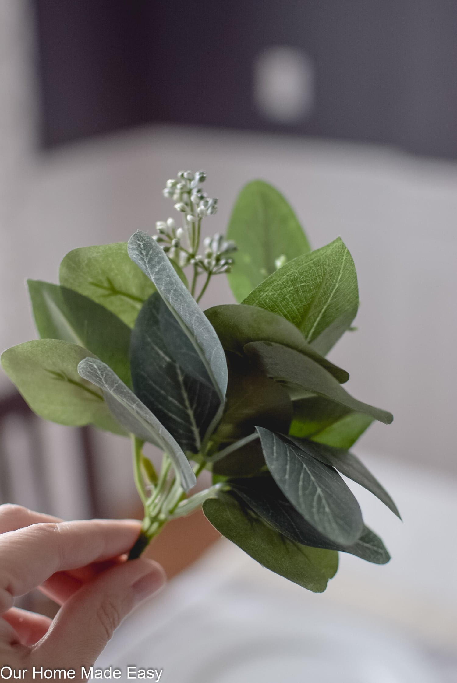 I found these little eucalyptus snippets from the Hearth & Home by Magnolia. You could even buy 1-2 greenery stems, clip them and use them. For super cheap, you can make these in no time. I spent about $8 for the 6 pieces. It seemed like a great deal for greenery.