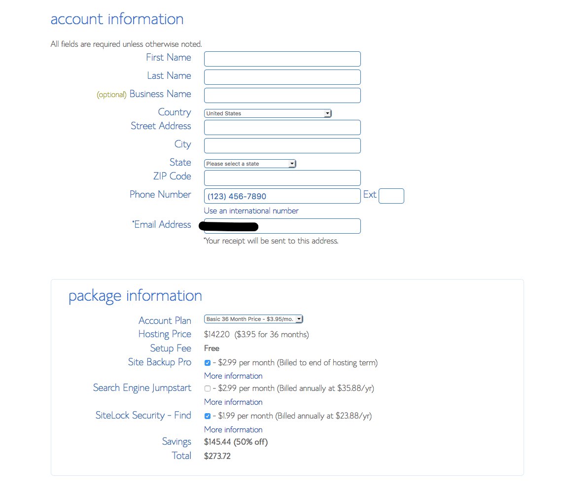 You’ll be prompted to check out. When you sign up for hosting, you’ll pay for all the months at once. I tell you not to discourage you, but to avoid you being surprised at checkout. Take a look at Bluehost’s money back guarantee for additional information.
