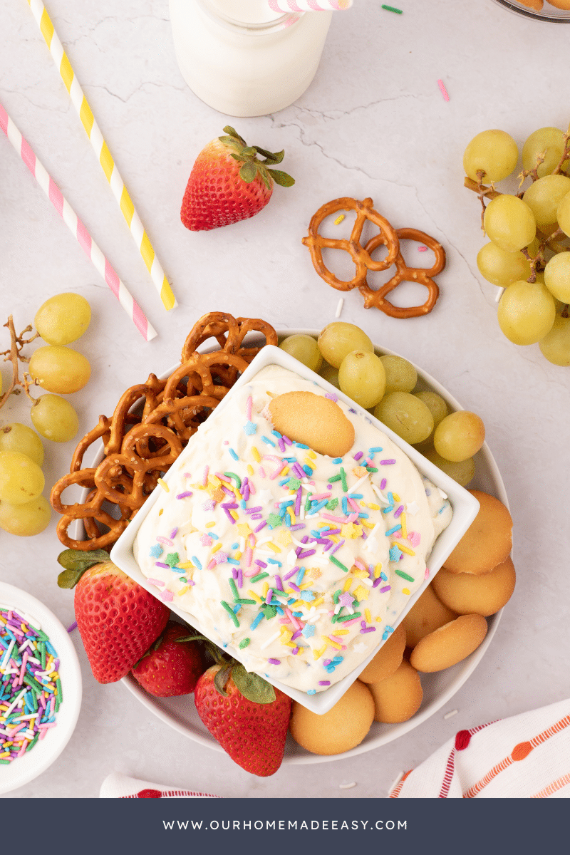 - Birthday Parties: Serve this dip at your next birthday party with a variety of favorite dippers like vanilla wafers, animal crackers, or graham crackers. It’s a fun, mess-free dessert that kids and adults will love.