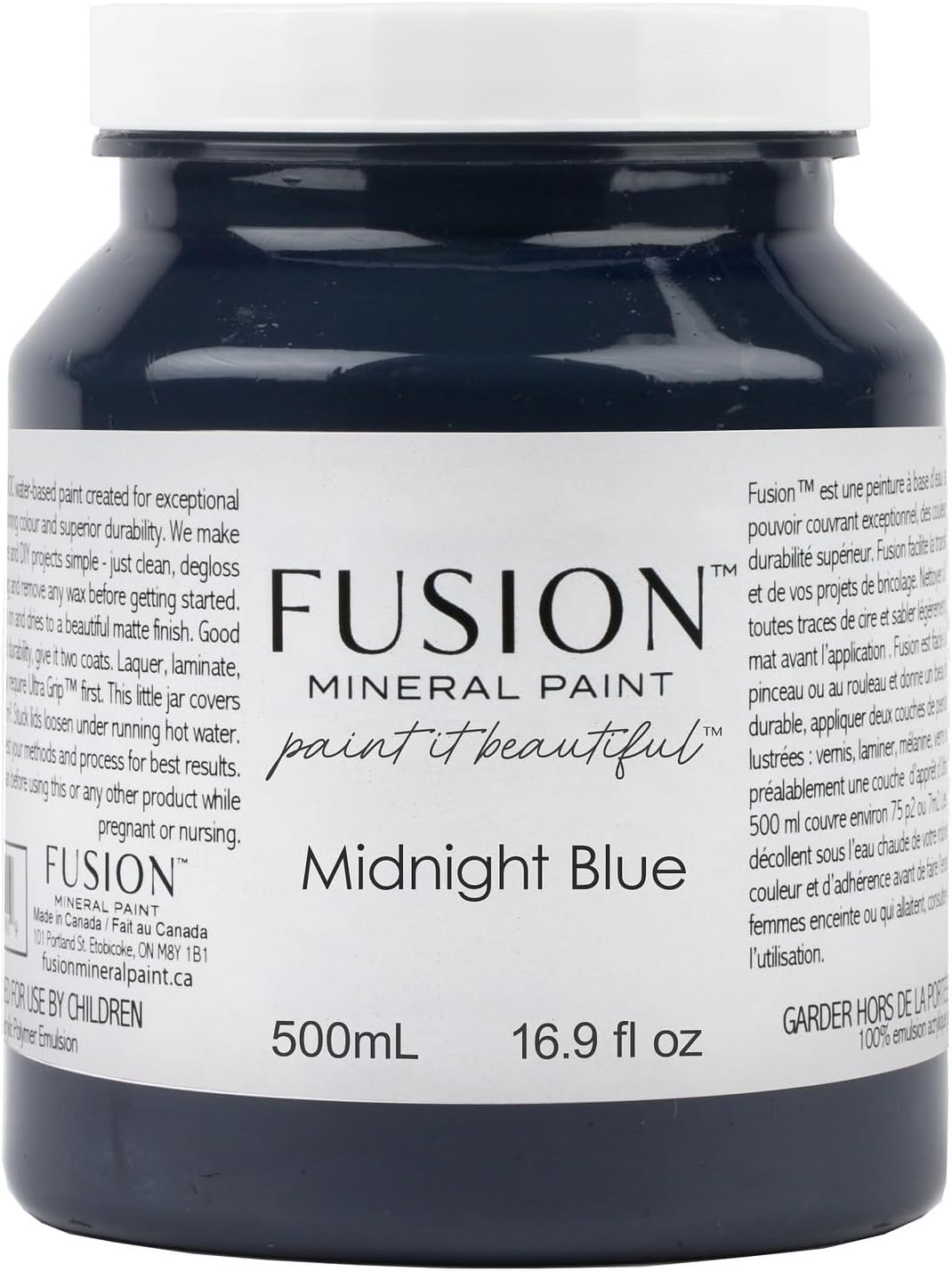 Fusion Mineral Paint is based in Canada. They sell their products both at local paint/home decor shops and online. To save time, I purchased the Fusion Mineral Paint in Midnight Blue on Amazon.