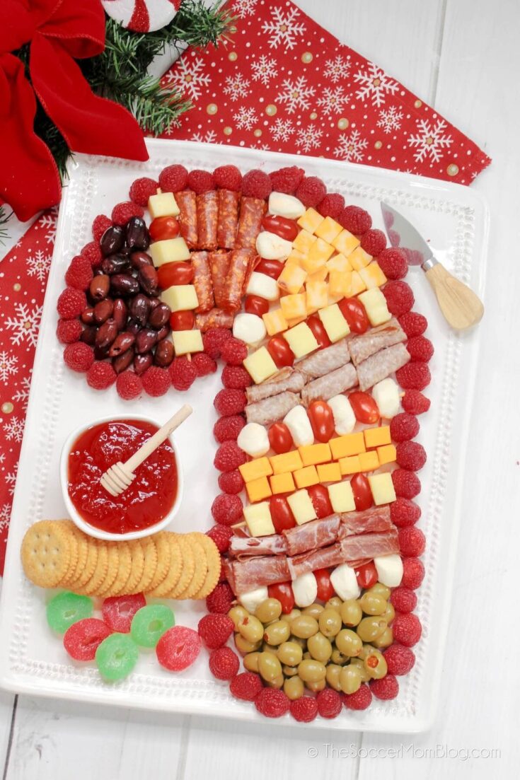 This festive Christmas charcuterie board is the perfect appetizer idea for holiday parties and family gatherings. Easily customize your board with your favorite meats, cheeses, and crackers!