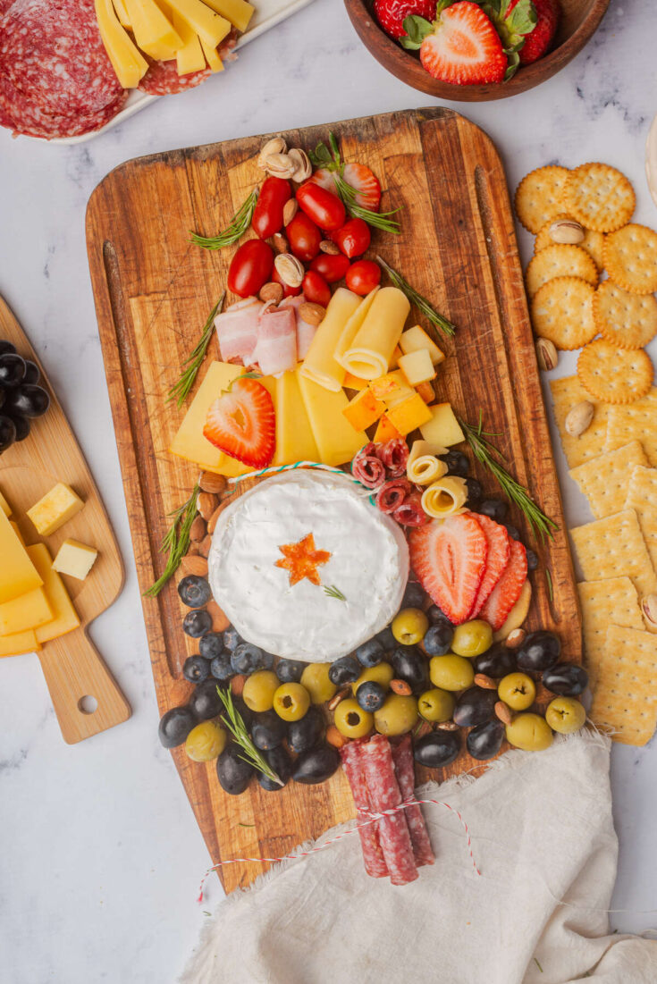 Christmas: Go for red and green pops with cherry tomatoes, green olives, and sugared cranberries. Use cookie cutters for cheese or jam-filled shapes. For even more ideas, don’t miss my Christmas Charcuterie Board.