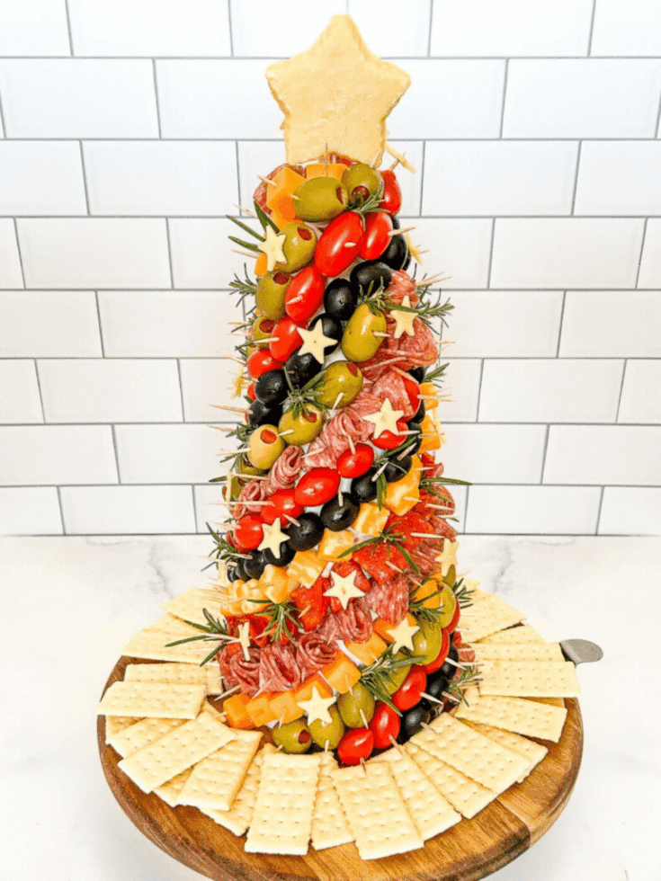 This charcuterie Christmas tree is the best appetizer for the Festive season. It’s filled with all your favorite snacks and is perfect for Christmas parties, Friendsmas, or any festive gathering.