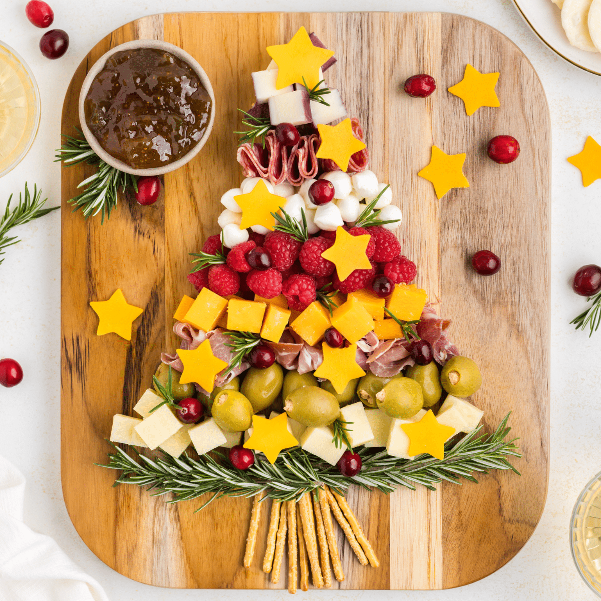 Transform your go-to charcuterie lineup into a festive masterpiece with this Christmas Tree Charcuterie Board! Loaded with a variety of meats, cheeses, fresh fruit, and salty olives arranged in the shape of a Christmas tree.