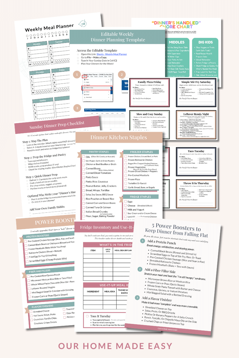 Your 5 PM panic button just got replaced with a plan. Dinner tools and ideas that work even on your busiest days.