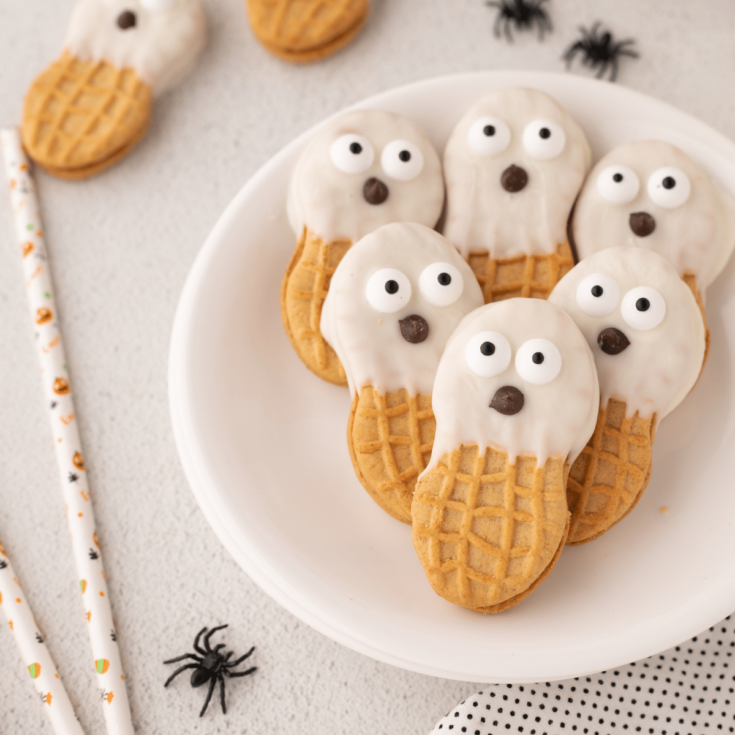 These dipped ghost Nutter Butter cookies are the cutest Halloween party treat. Quick to make and fun to gift in boo bags!